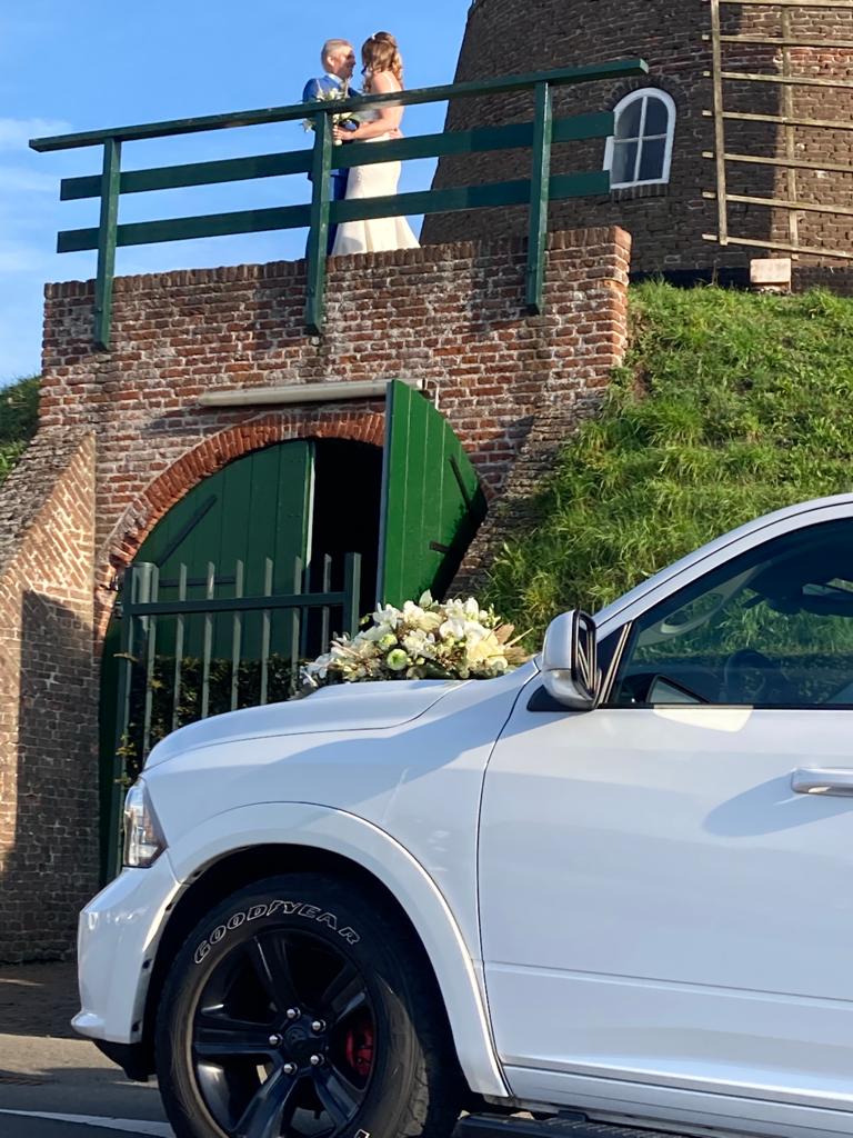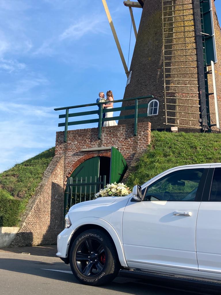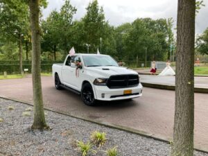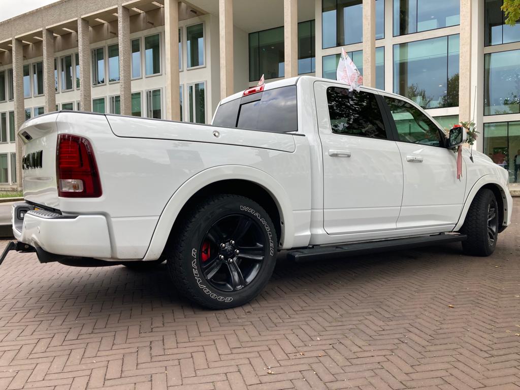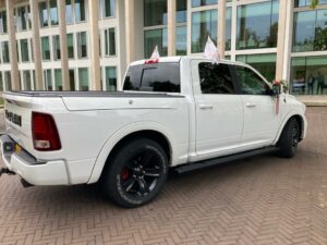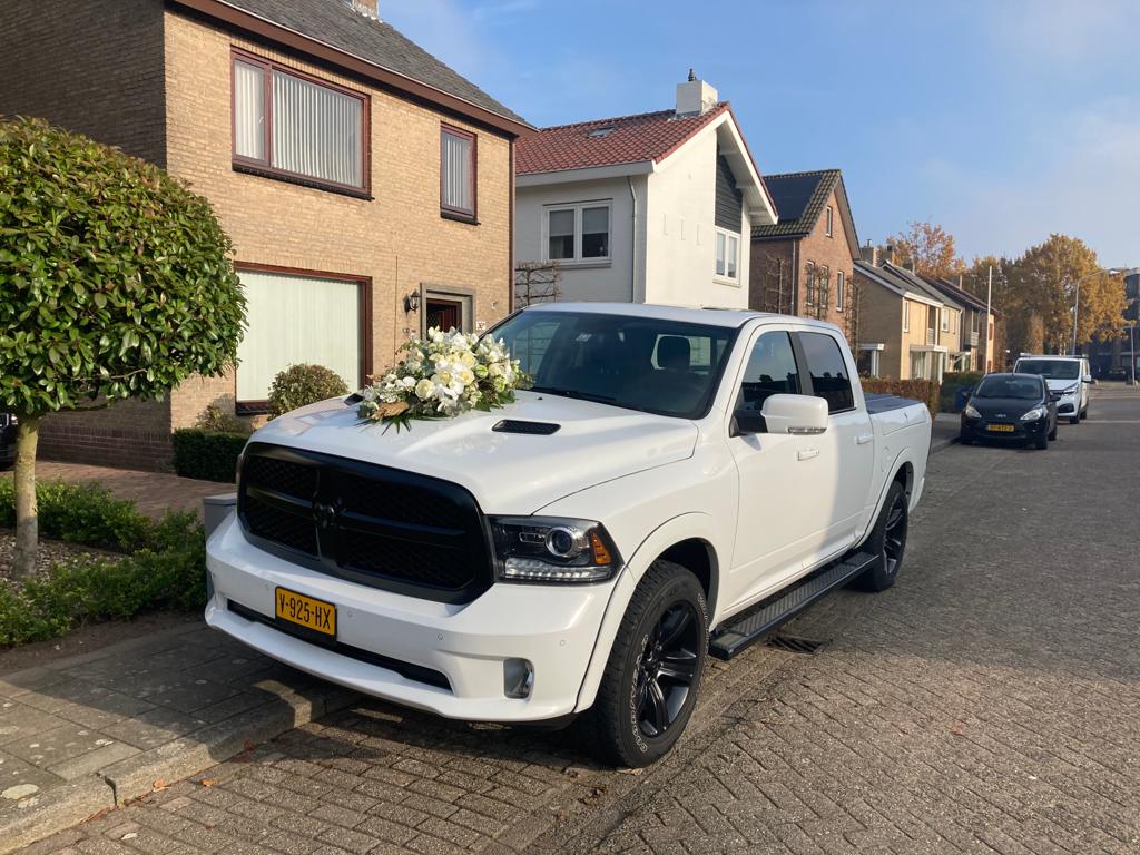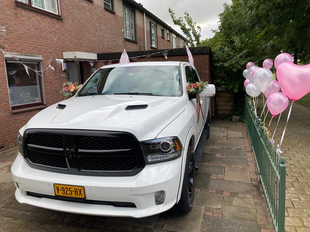 John staat met onze witte Dodge RAM Night Edition voor u klaar om u naar de door u gewenste locaties te rijden. Ter gelegenheid van deze speciale dag, hebben we ook voor u een glaasje bubbels klaar staan in de zeer ruime en comfortabele cabine.